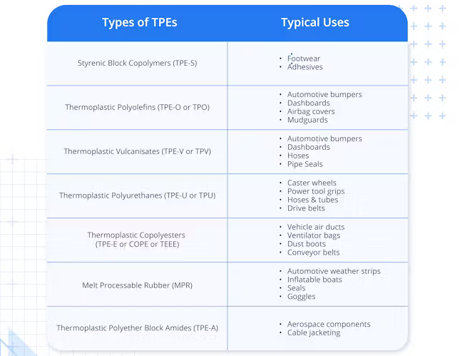 Thermoplastic Elastomers (TPE) – six major types and their applications