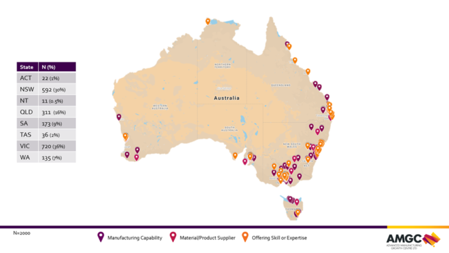 The Advanced Manufacturing Growth Centre has released a map and state-by-state breakdown of submissions to its Manufacturer Response Register, launched last month to coordinate a response by the industry to the Covid-19 outbreak.