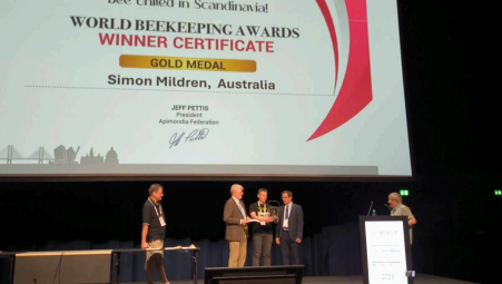 Australian hive harvesting innovator wins gold at World Beekeeping Awards