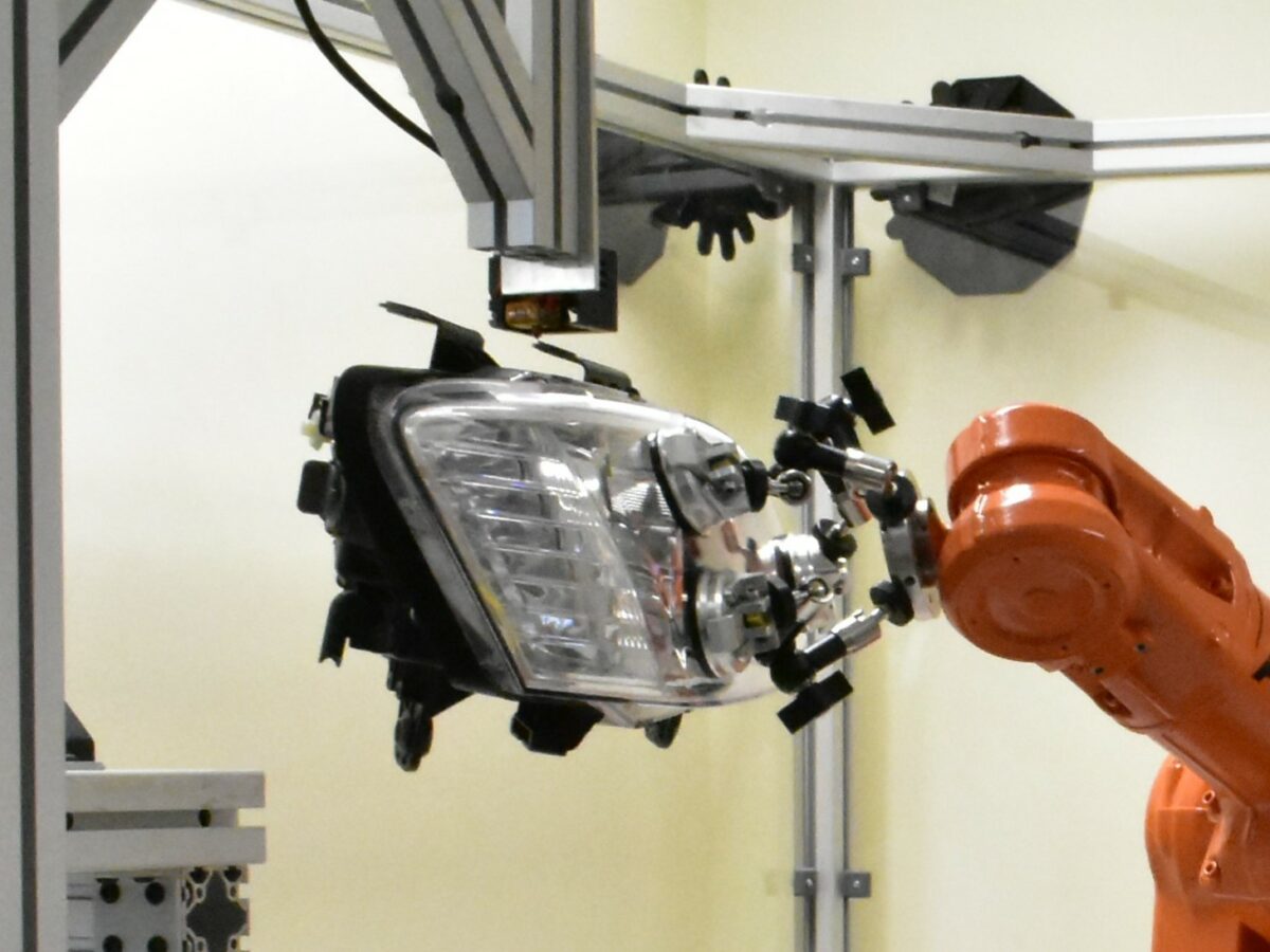 The new material enabled the robotics team, led by Dr Mats Isaksson, to use a robotic arm to manipulate the headlight under a stationary 3D print head, allowing complex geometries to be printed without the need for support material.