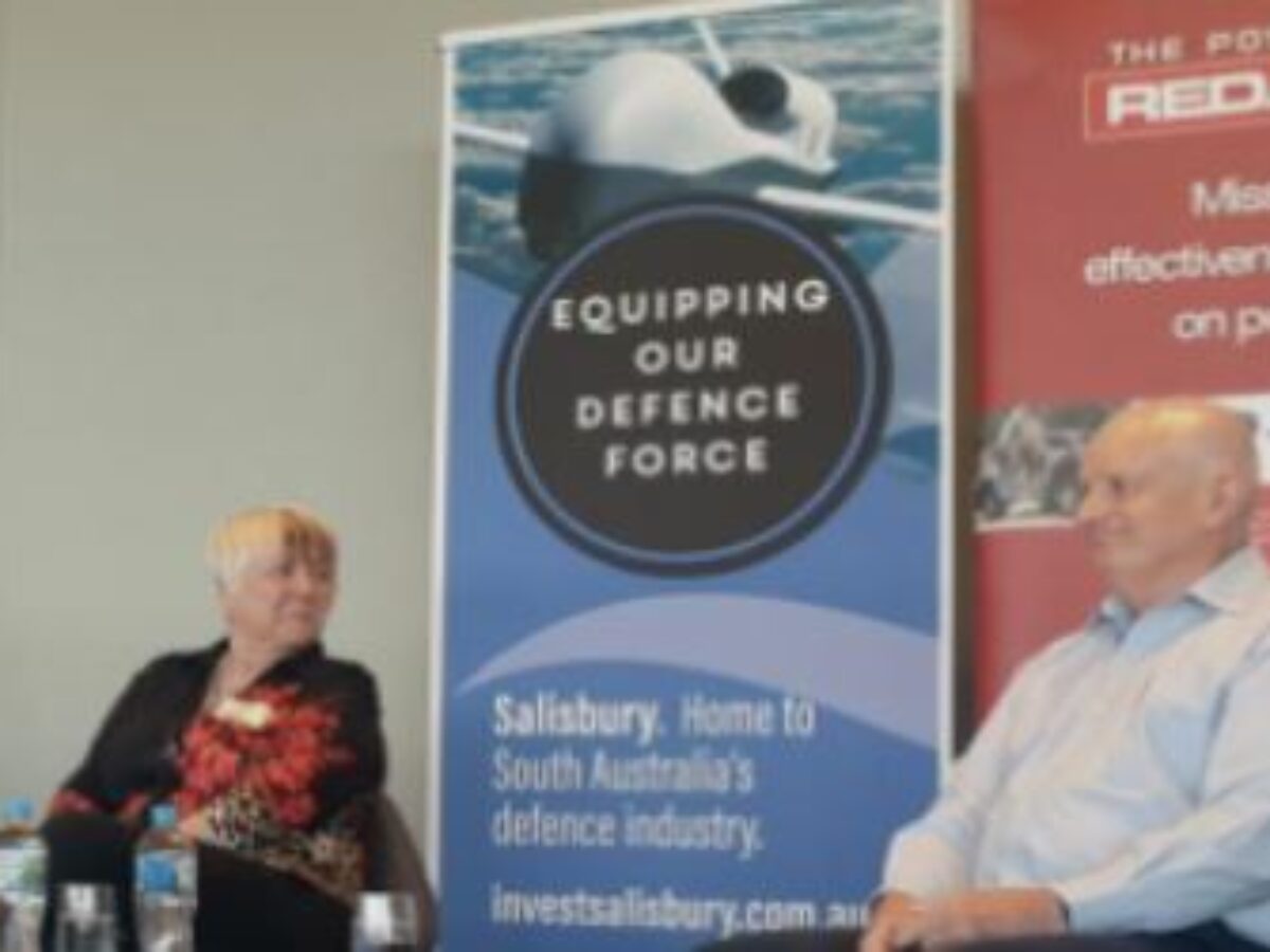 Picture: Defence Teaming Centre 2020 Leadership Breakfast/BAE Systems Australia continuous naval shipbuilding strategy director, Sharon Wilson, and Peter Roberts