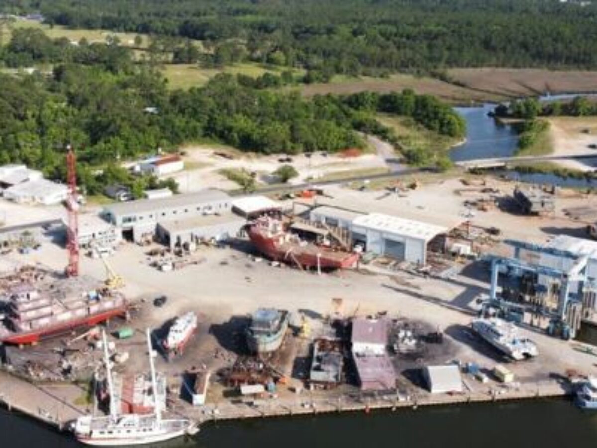 The shipyard is situated just minutes from the Intracoastal Waterway with direct access to the Gulf of Mexico.