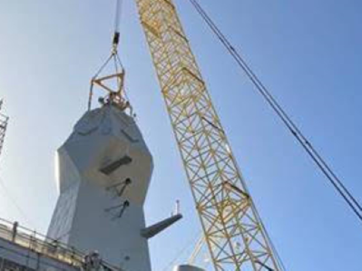 Picture: BAE Systems Australia/Inatsllation of CEA Technologies radar mast on board HMAS Stuart