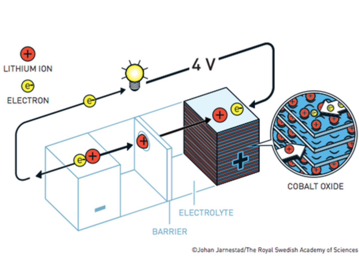The next advancement was made by Goodenough, who figured out that changing one of the components of Whittingham’s battery, from titanium disulfide to cobalt oxide, resulted in a much more powerful battery. He later found that iron phosphate was a less expensive and less toxic alternative that also worked well.