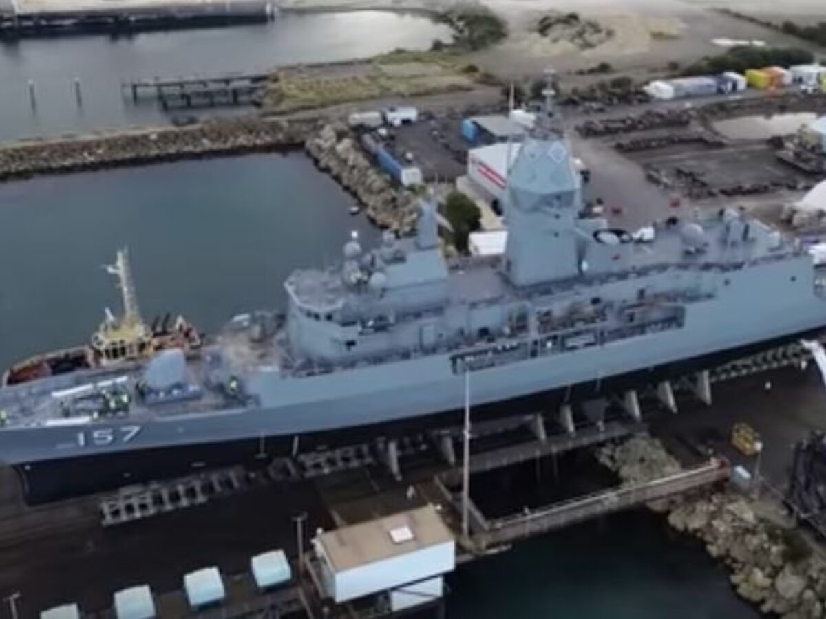 The Anzac class frigate was in dry dock at the Australian Marine Complex at Henderson near Perth.