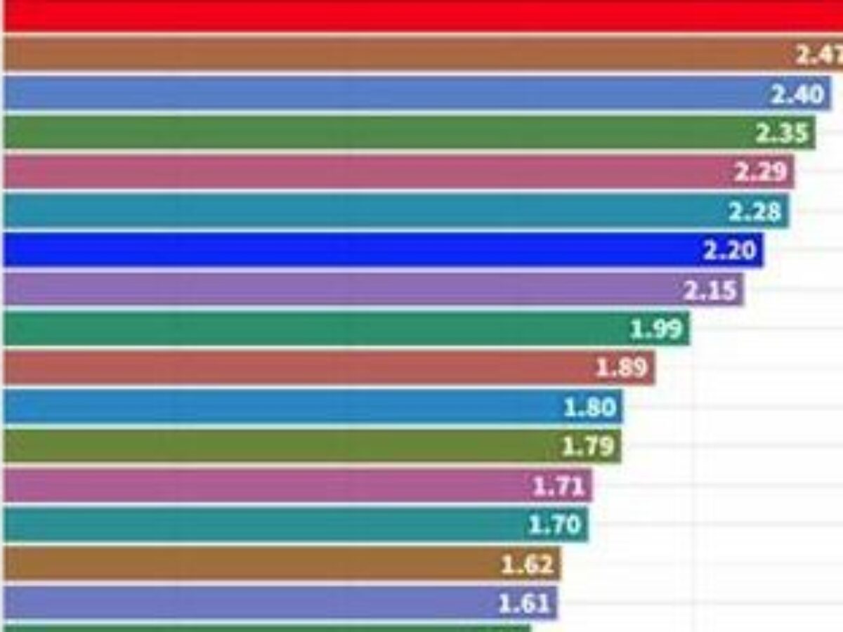 This is way behind and falling further behind the leaders – unsurprisingly led by Israel on 5.44 per cent, Korea on 4.8 per cent, Taiwan 3.64 per cent and Sweden on 3.53 per cent.