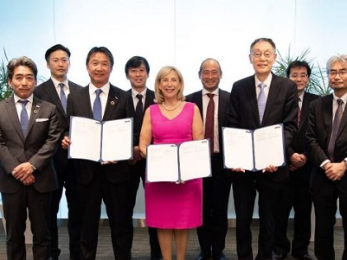 Picture: Lynas Rare Earths/Today's signing agreement with Lynas CEO and Managing Director Amanda Lacaze, Executive Vice President of JOGMEC and Senior Managing Executive Officer of Sojitz Masaaki Bito.