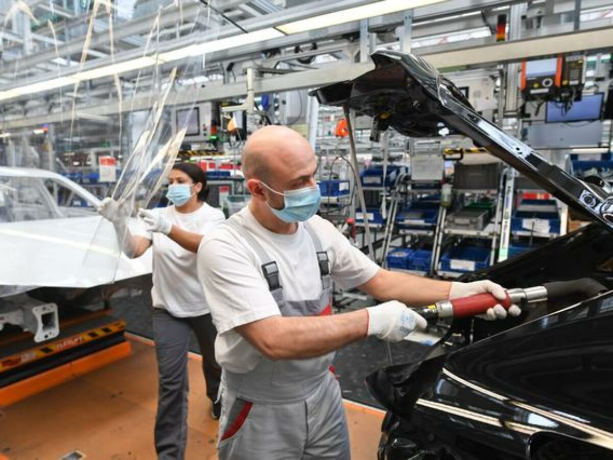 Picture: Two employees, separated by plastic hygiene protection, work at the A3 and A4 production line of the German car manufacturer Audi, amid the spread of the coronavirus disease (COVID-19) in Ingolstadt, Germany, June 3, 2020. (REUTERS/Andreas Gebert)