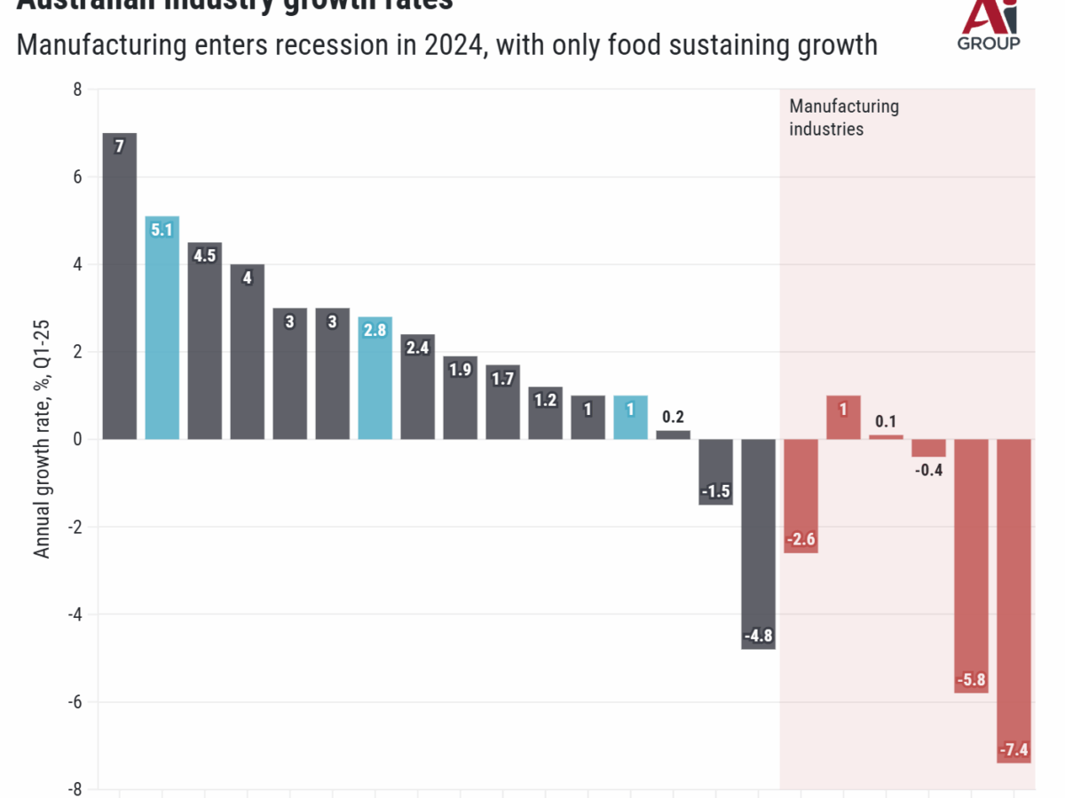 Australian manufacturing and its almost one million employees face deepening risks unless urgent economy-wide reforms are undertaken to return the industry to growth and boost its falling productivity, according to the Australian Industry Group.