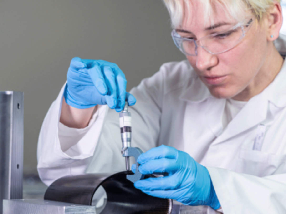 Picture: An engineer at ACS-A inspecting ultra-high temperature composites part (supplied)