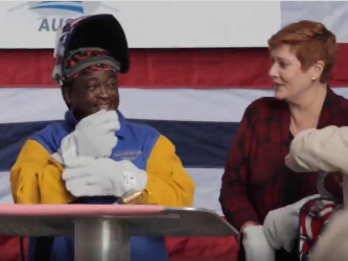 Foreign affairs minister Marise Payne has officially laid the keel for the future USS Canberra at a ceremony (pictured) at Austal's shipyard in Mobile Alabama.