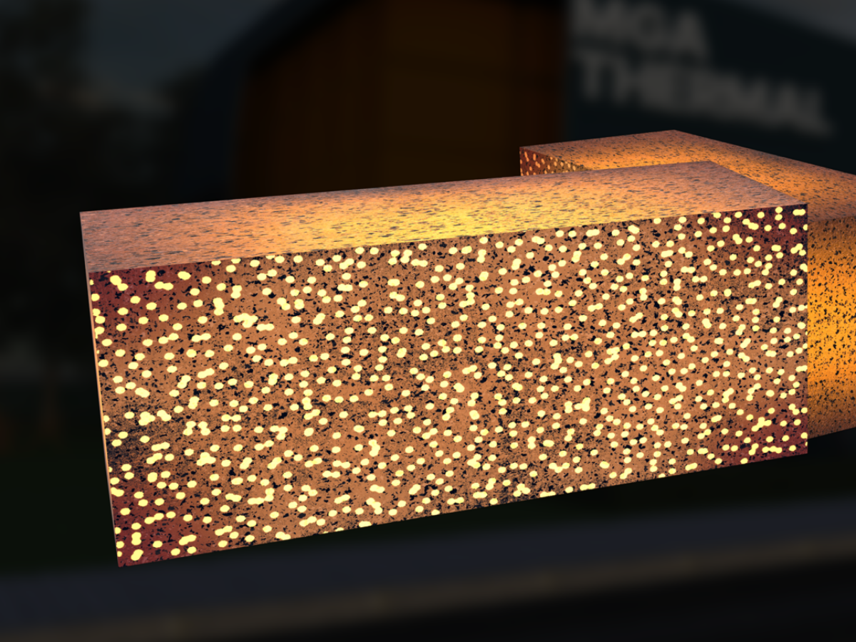 MGA Thermal is commercialising a “miscibility gap alloy”-based approach to storing heat, based on research at the University of Newcastle. Heat is stored in metal alloy particles, which are surrounded by a brick-shaped metal matrix (pictured), and can be released to create industrial heat or dispatchable electricity through steam.