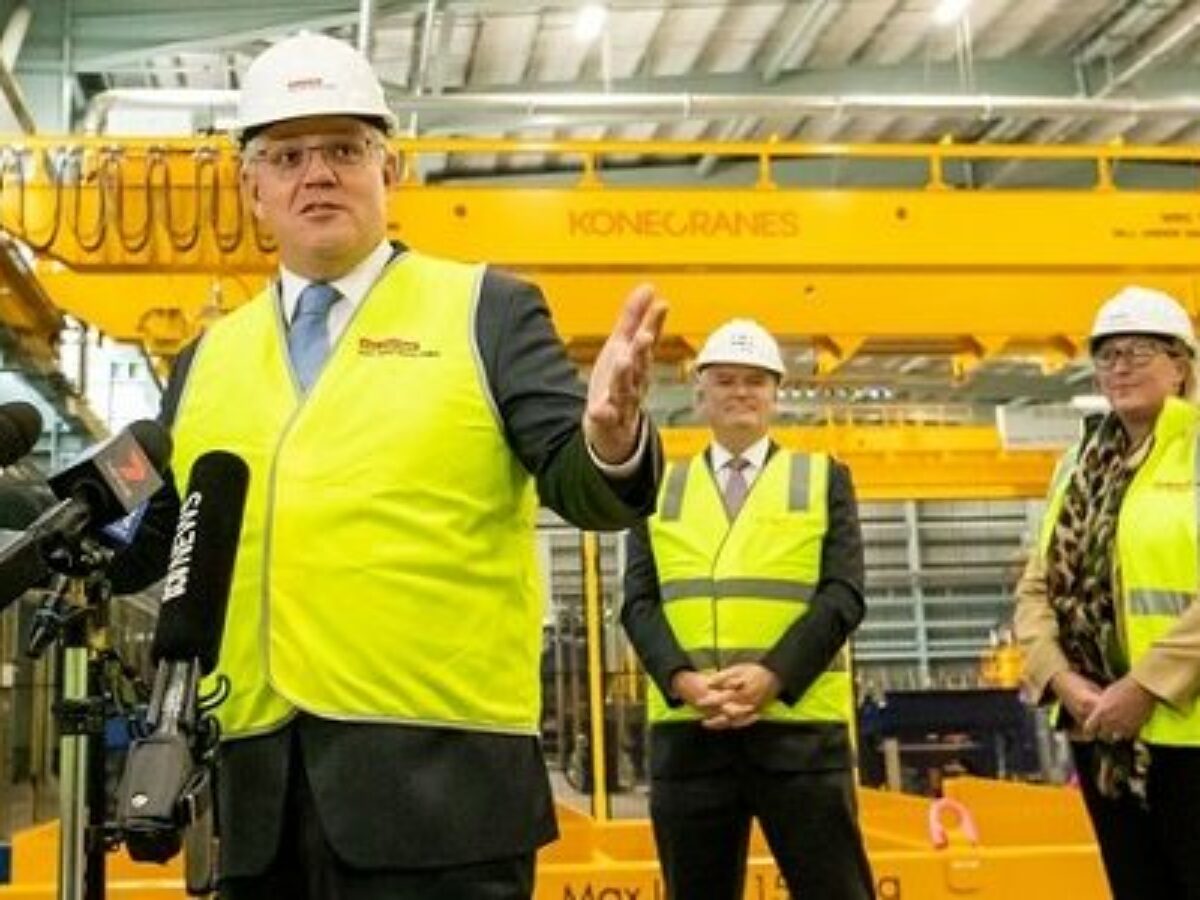 Picture: PM Scott Morrison at the Osborne naval shipyard