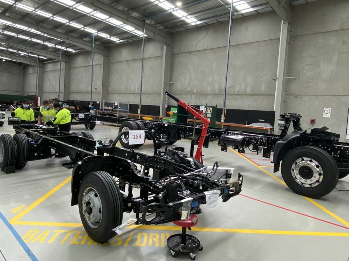 Electric truck drive train manufacturer SEA Electric's Dandenong, Melbourne assembly line is in full swing as technicians fit its locally-made drive systems to imported truck chassis.