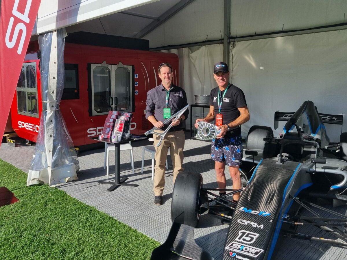 The live demonstration took place at the Grand Prix’s Versor Tech Hub and used one of SPEE3D’s WarpSPEE3D machines.