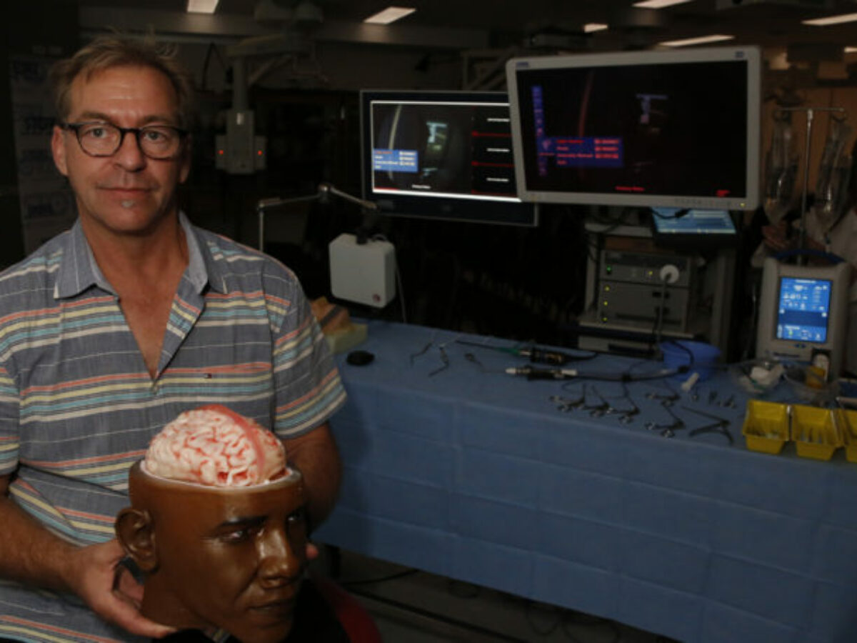 The first brain dissection on the prototype 3D-printed Obama head was carried out this week by Royal Adelaide Hospital neurosurgeon Dr Adam Wells, who will help develop the head until it is realistic enough to train surgeons at a high degree of difficulty.