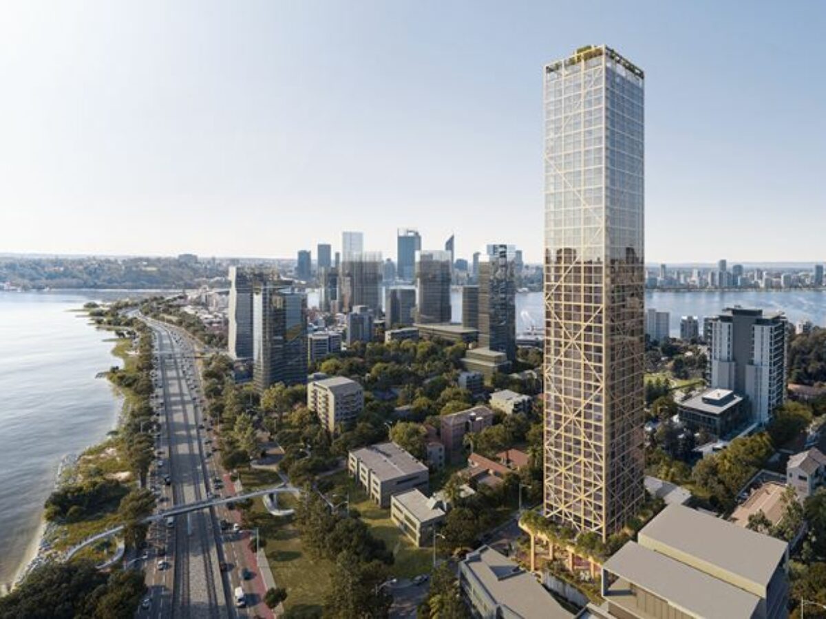 The wooden tower will be Perth's third tallest, dwarfed only by Brookfield Place at 234.4 metres and Central Park at 205 metres.