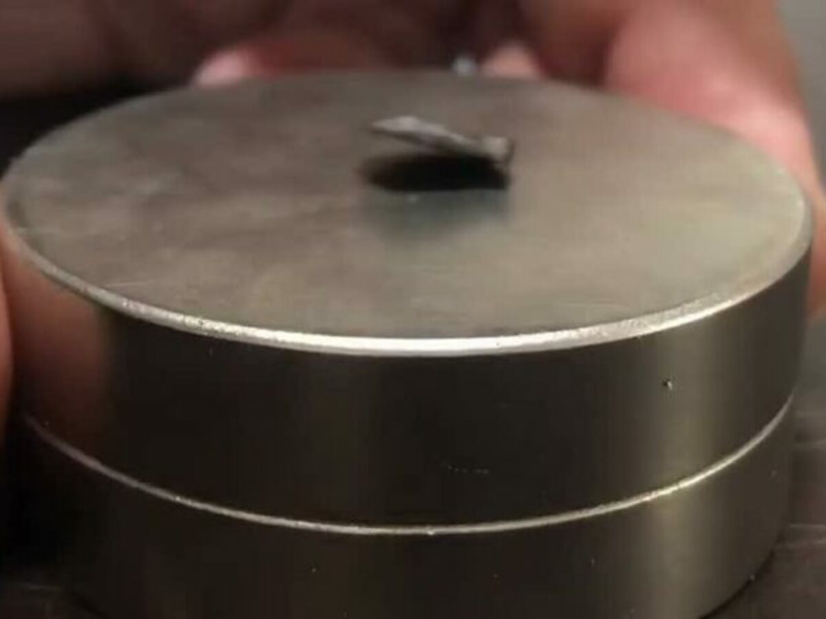 In a video demonstration, the researchers position a piece of LK-99 over a magnet. One edge of the flat disk of LK-99 rises, but the other edge appears to maintain contact with the magnet.
