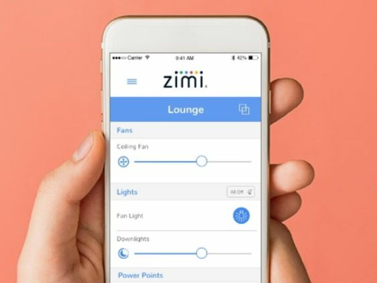 The company sells a cloud connected dimmable light switch, fan controller, garage door opener, and power points, all connected and operated via its Zimi app (pictured).